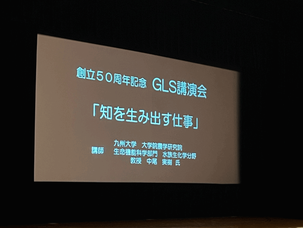 令和7年7月10日(木)、安城市民会館サルビアホールにて、「創立50周年記念GLS講演会」が本校生徒に向けて実施されました。GLSとはグローカル・スタディーズの略です。講師は九州大学大学院農学研究院 生命機能科学部門 水族生化学分野 教授である中尾実樹先生にご講演いただきました。中尾先生は本校2回生でいらっしゃいます。講演会には、PTA、同窓生、同窓会実行委員の方々もかけつけてくださいました。