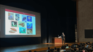 7月10日の創立50周年記念GLS講演会では、講師の中尾実樹先生が、みなさんに多くのメッセージを送ってくださいました。例えば「将来の夢は結論を急がない」「方向性に迷ったら選択肢の多い方を選ぶ」「直観に従うことも大事」「迷う=冒険するチャンス」「答えを求めない」「好奇心のポケットが空にならないようにする」その他にも研究のあり方、大学の魅力、真実を見抜くことの大事さ、ご自身の生き方など、みなさんにとって参考になる、同窓の大先輩からの生きたメッセージばかりだったと思います。そのメッセージをどう受け取るかは、後はみなさんの考え方しだいです。中尾先生のお話を聞いて、みなさんはそれまで自分自身にはなかったグローバルな視野を得られたはずですので、さらに自分の身近な問題と関連付けるローカルな視点で一度考えてみて下さい。