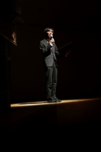 司会は本校46回生の我喜屋さん。放送部OBです。